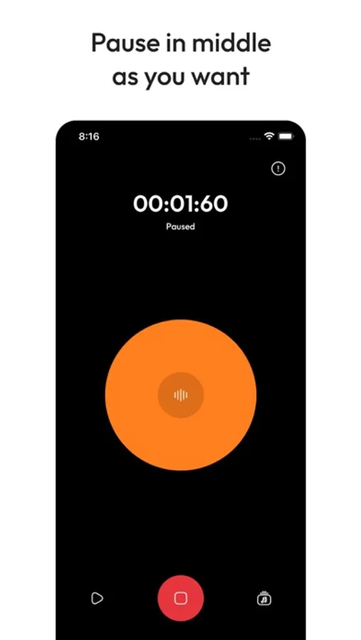 * Any time in the middle possible to pause the recording and continue again