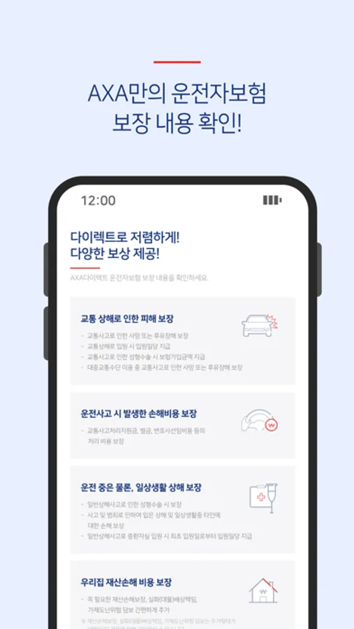 AXA다이렉트 운전자보험 보장 내용을 확인하세요.