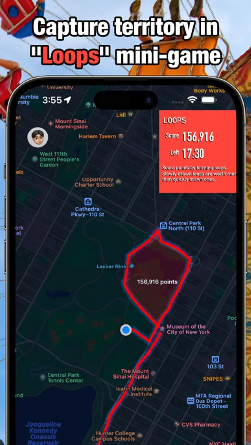 But that's not all – MapCred also lets you compete with friends on Game Center leaderboards. Show off your map mastery and see who's got the most time on their hands. Capture territory in the new "Loops" mini-game. Compete in "Speed Run" to see who can stay above 50mph the longest (no bus required).