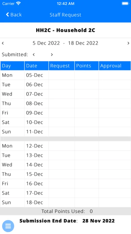 to submit their requests for day offs, specific shift, or leave (vacation) days