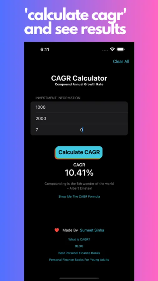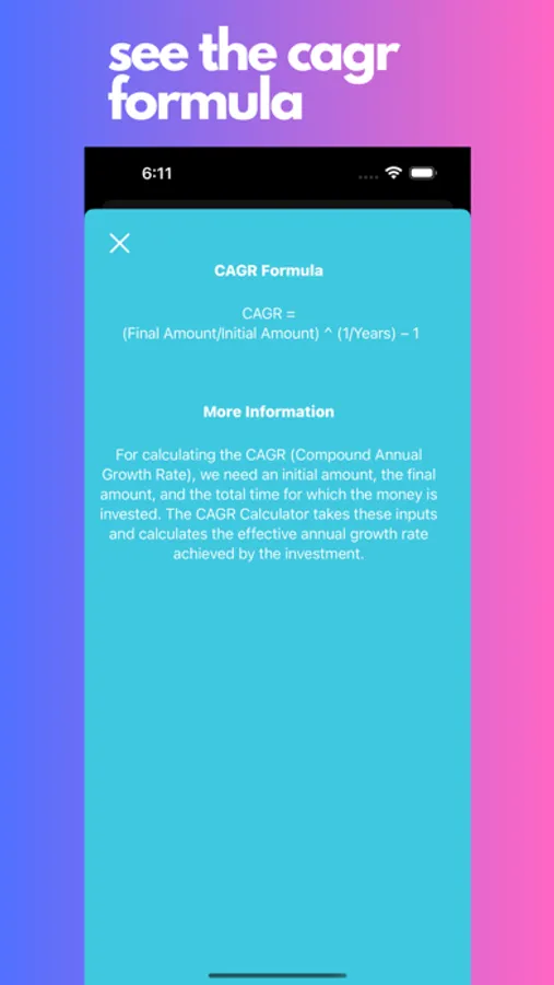 Unleash the potential of your financial decisions with the CAGR Calculator app. Gain valuable insights into your investments, make informed choices, and foster financial growth. Use the CAGR Calculator and empower yourself on your journey to financial success.