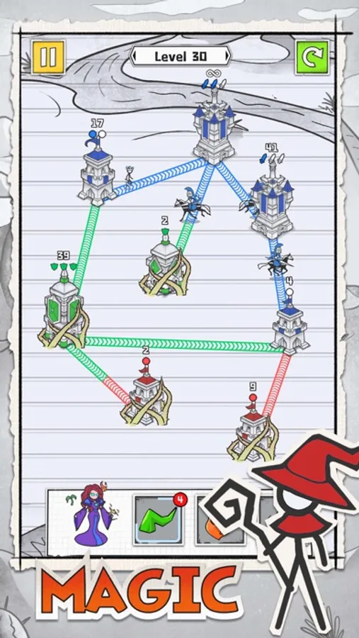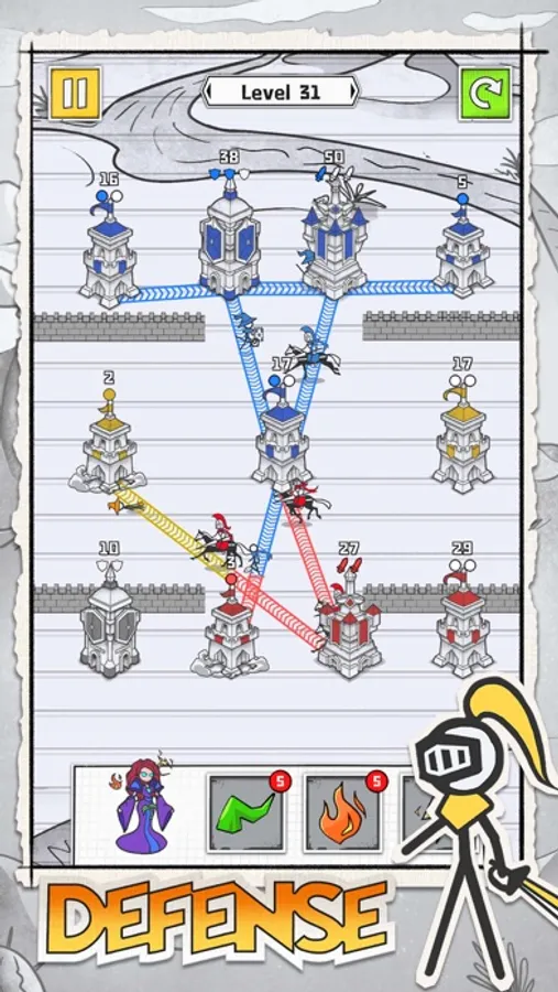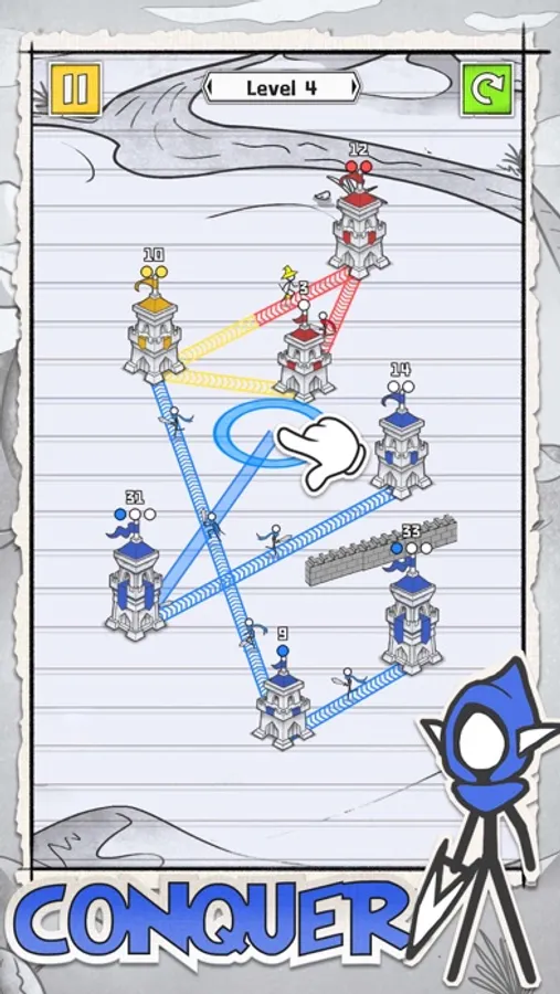 Use your ingenuity to specify the correct strategic plan and lead the stickman to defend their own castle while occupying the castles of other colors. You win when all the castles are occupied by blue stickman.