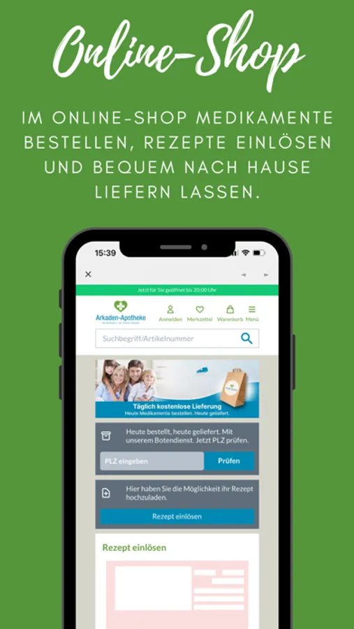 Apotheken-Gesundheits-App mit allen relevanten Serviceangeboten der Arkaden-Apotheke.