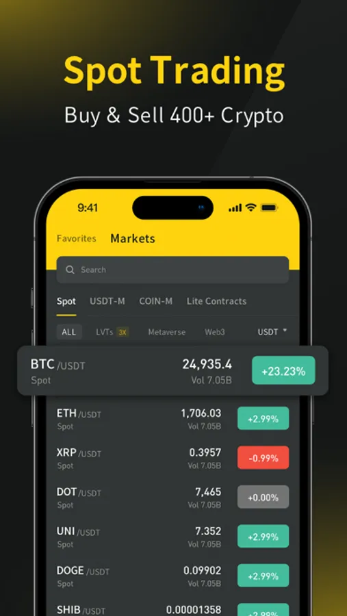 BYDFi offers 400+ spot trading options, covering not only mainstays like Bitcoin and Ethereum, but also popular meme coins such as Doge and Shiba Inu. Additionally, we provide access to 150+ perpetual contract trades, offering our customers a seamless all-in-one experience in the world of premium crypto trading.