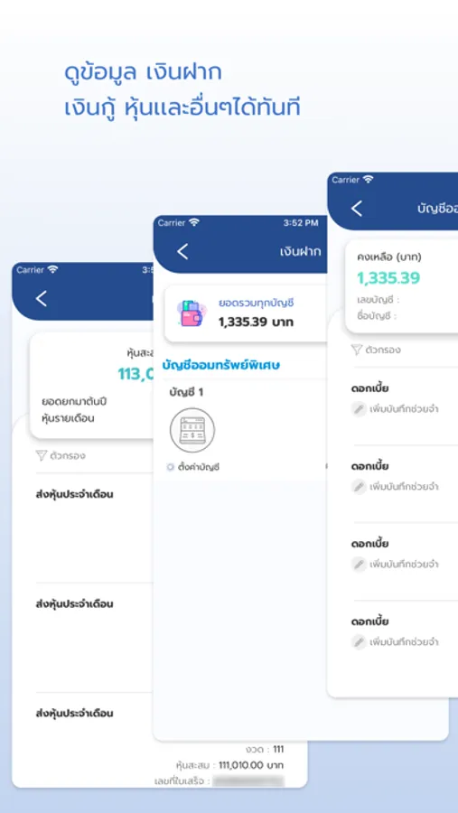- ดูยอดเงิน รายการเคลื่อนไหวบัญชีเงินฝาก
