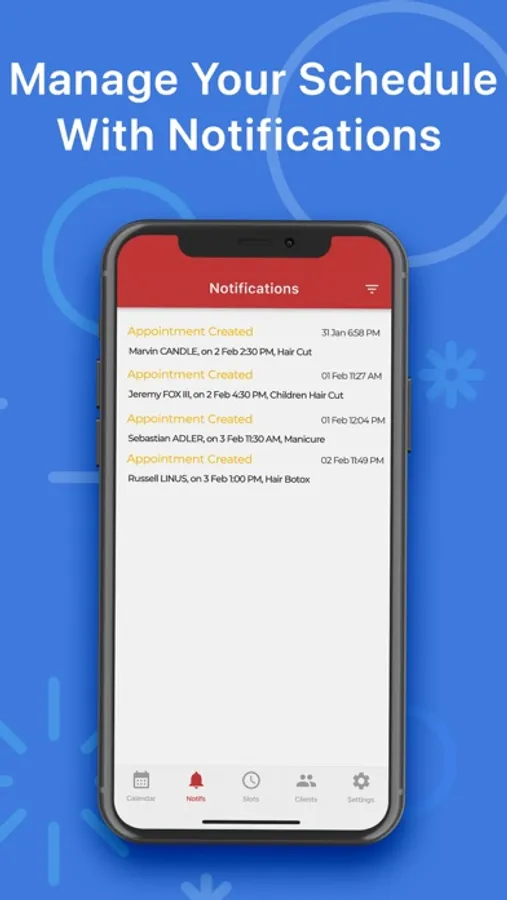 • NOTIFICATIONS: Get notification for new appointments and cancellations.