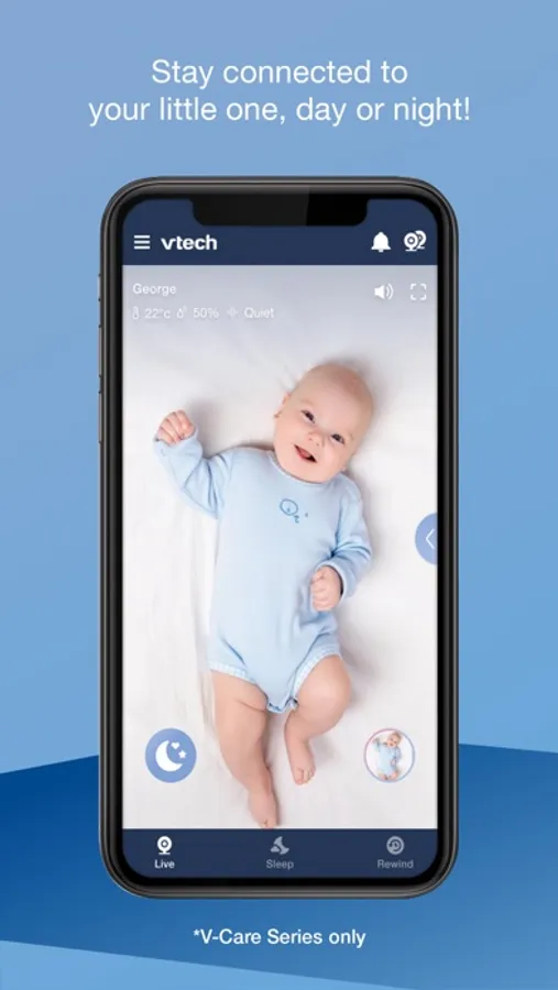 - Get your baby’s sleep analysis and trends over time (V-Care Series only)