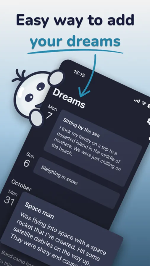 Log in with Apple to always keep your dreams safe and secure in the cloud. Log in to as many devices as you want and all your dreams will stay in sync.