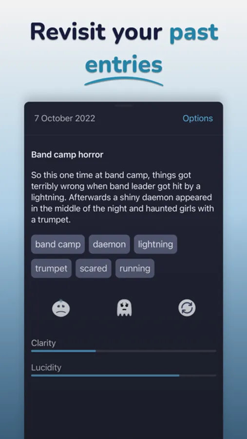 Unlimited space to describe your dream in detail and option to tag important parts.