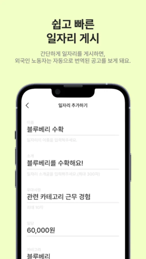 팜워크는 농민과 외국인 노동자를 위한 구인구직 앱입니다.