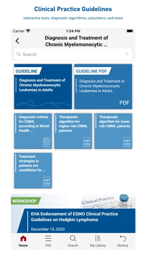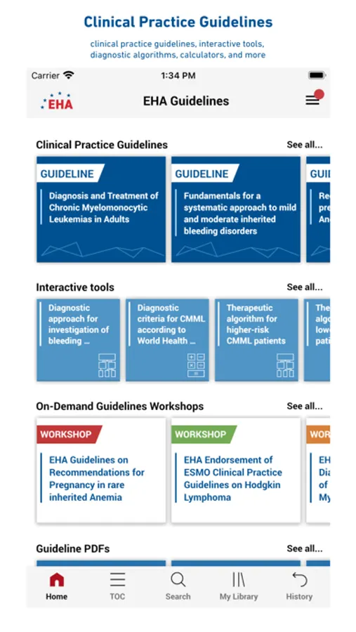 The EHA Guidelines app is a free service offered by the European Hematology Association. The app contains hematology clinical practice guidelines, interactive tools, diagnostic algorithms, calculators, and more.