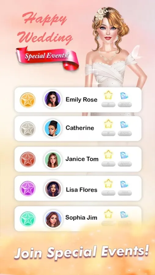 - A variety of stylish attire and stunning bridal cosmetics. Play with the theme of a genuine or opulent game.