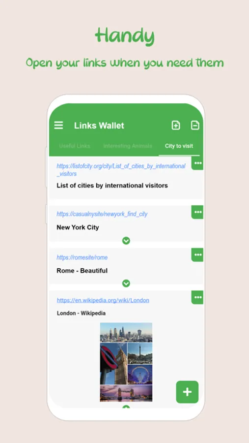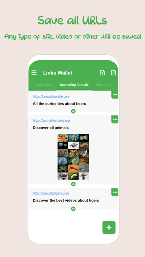 With the URL wallet you can save any type of content: music videos, links, URLs, news.