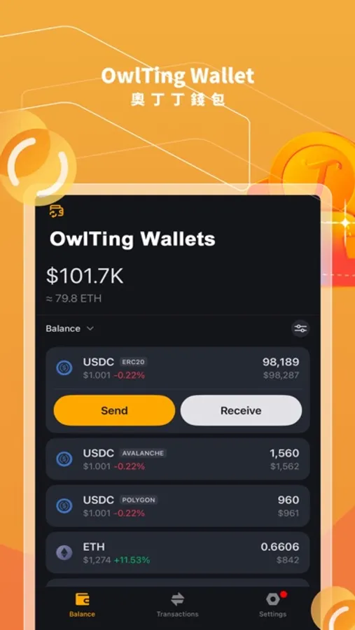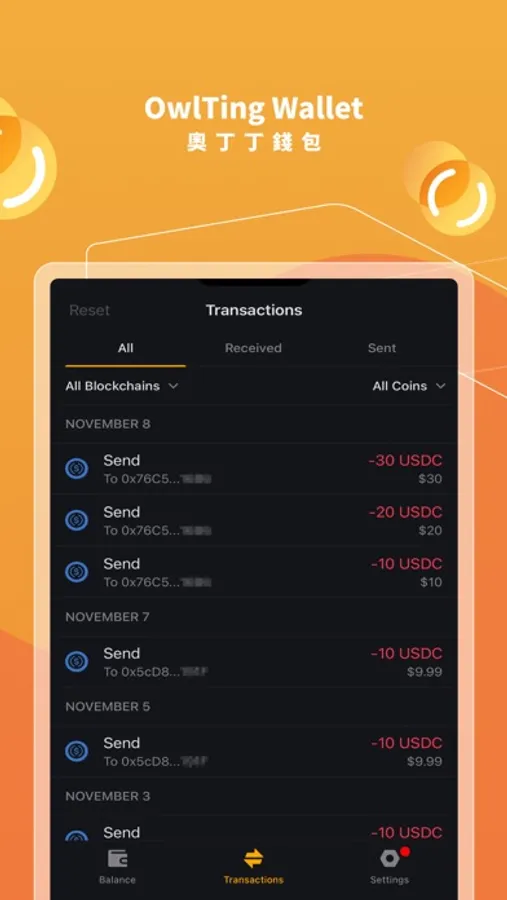 With OwlTing Wallet Service, you can send and receive payments through blockchains, or transfer digital assets to external wallets whenever you want.