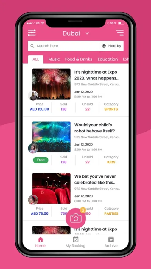 A unique app that helps everyone to get in touch with the near by events that they would like as you can browse any type of events near by you, whether paid or free according to your preferred category. You can book directly and get your ticket via the app. Moreover companies van join the application and create their own private events that their employees can find easily in the app from their facilities option.