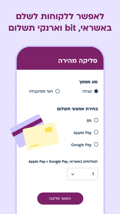 יותר דרכים לשלם, יותר לקוחות: חיבור לשירות תשלומים דיגיטליים מהנייד שמאפשר ללקוחות שלך לשלם בדרך שהכי נוחה להם עם סליקה מהירה באשראי, bit ועכשיו גם ב-2 דרכים חדשות: Google Pay ו -Apple Pay.