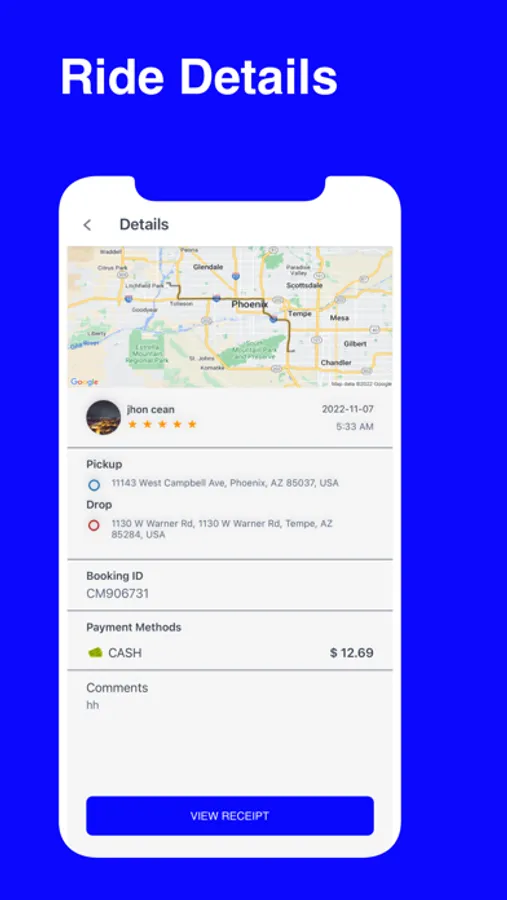 SMS and call option between passenger and driver in the application