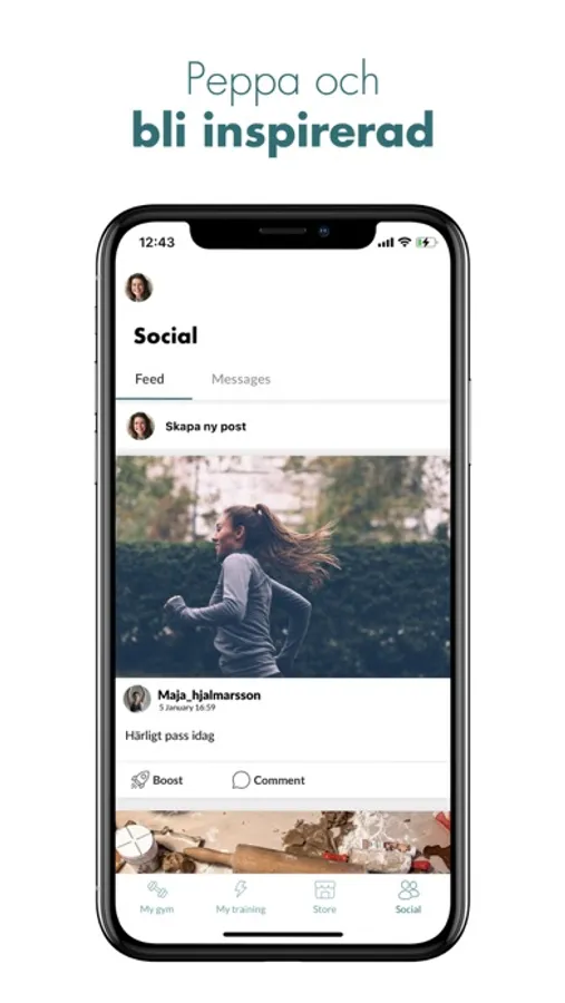 I appen finns en träningsdagbok där du kan logga din träning och hitta ny inspiration för att ta din träning till nästa nivå. Du kan också skriva och ställa frågor till inspiratören och andra medlemmar.