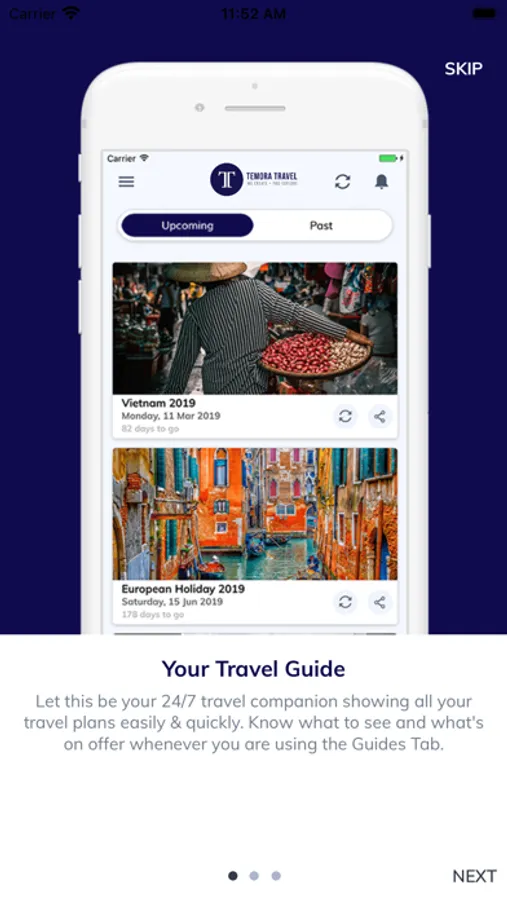 Say Goodbye to a big stuffed wallet of paper documents and say hello to modern convenience. Temora Travel’s app is a personalised electronic ticket wallet designed for travellers to carry all of your important paperwork when you travel. Temora Travel’s app not only stores all of your flight tickets, hotel & car hire vouchers, theatre and event tickets, it also has many other fantastic features.