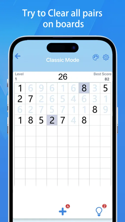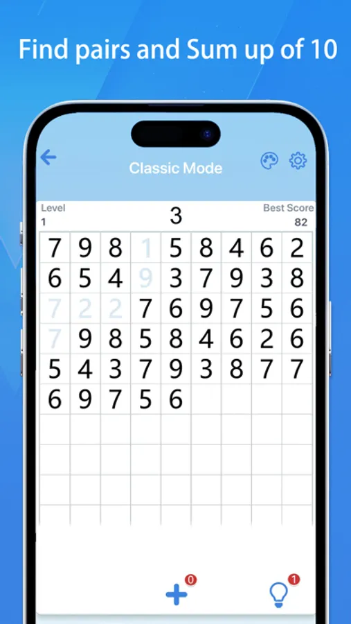 You can play a number-matching puzzle to calm down and relax your mind after a busy day. Find matching number pairs on the board, think about the best way to match, then clear the board to refresh the highest score! Feel the magic of numbers and give yourself an uplifting power!