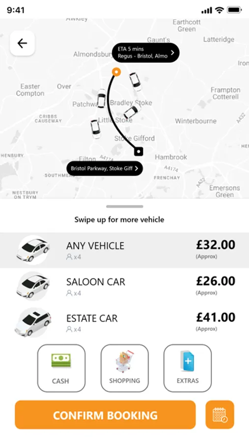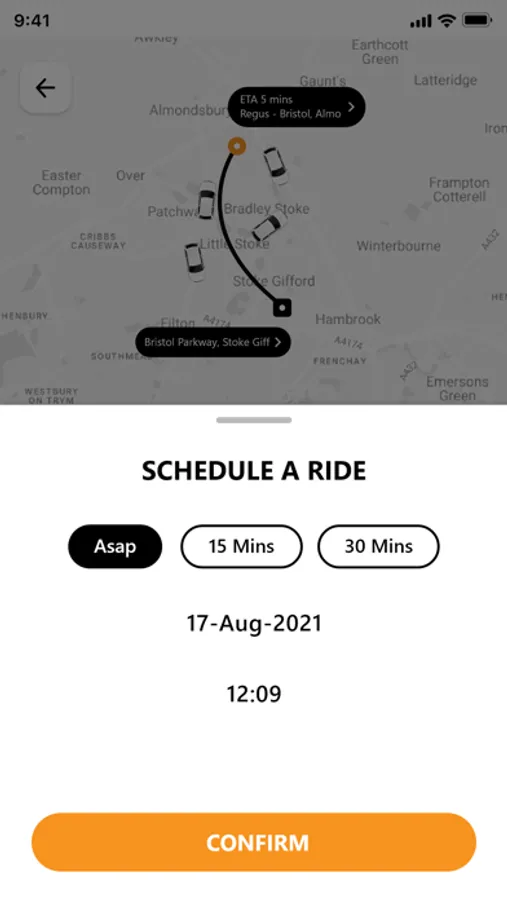 You can place the booking directly on our map, and see how many available cars there are nearby.