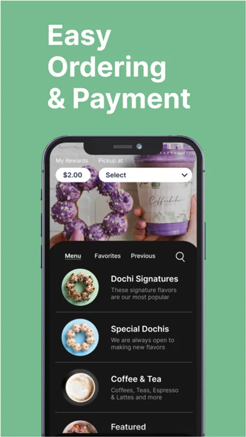 The Dochi Coffee app allows customers to easily order ahead and receive great rewards.