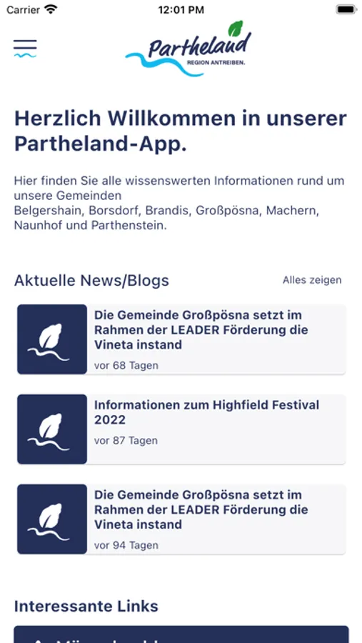 Hier können Sie sich über Ihre Parthelandgemeinde informieren. Lob und Kritik melden und sich über aktuelle Veranstaltungen, Termine und Geschehnisse informieren.