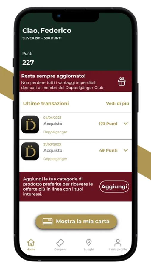 Download the app to be constantly updated on the unique offers dedicated to you, to view your Points Balance and to check your progress towards the next Band.