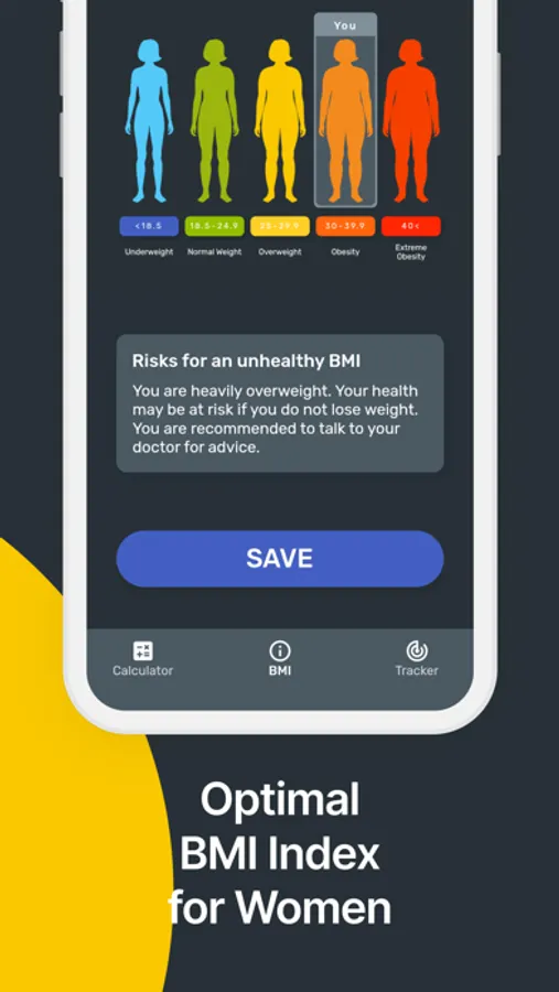 With this BMI Calculator, you can calculate and evaluate your BMI (Body Mass Index) and find out if you're a healthy weight. It is a screening tool that measures the ratio of your height to your weight to estimate the amount of body fat. The recommended levels are adapted from the global World Health Organization (WHO).