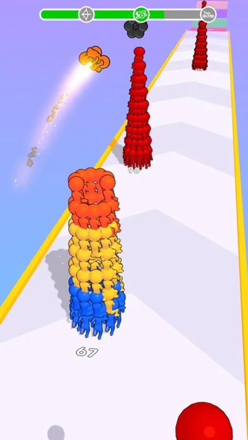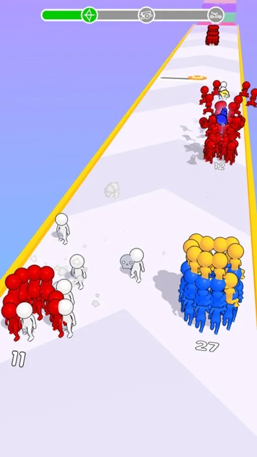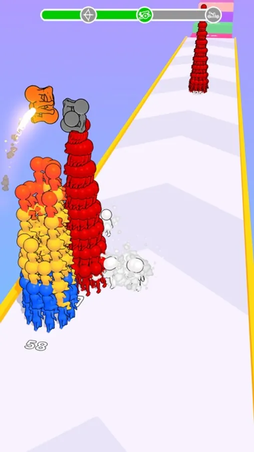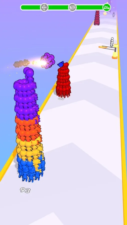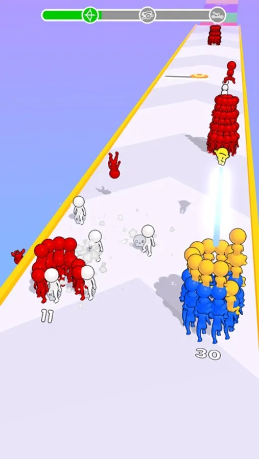 Gather men, strategize and attack the towers! Each man joining your team from the platform will increase your power and act as a stepping stone for your weapon development. The more men you recruit, the better your chances of destroying enemy towers.
