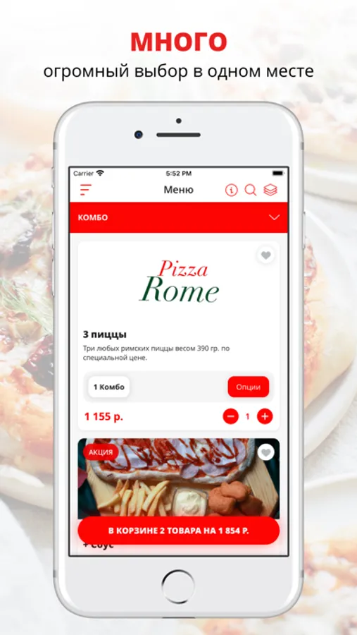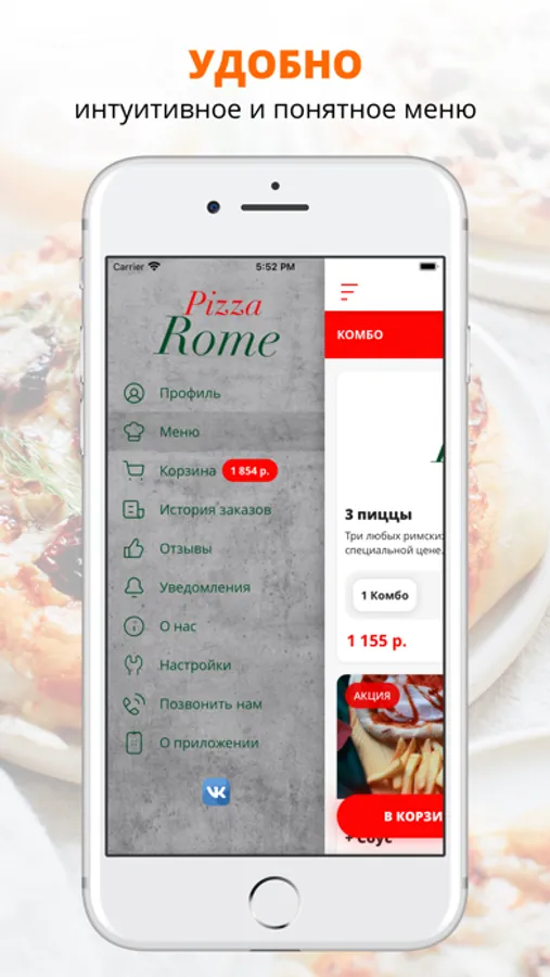 У нас в меню есть как Римская пицца на хрустящем тесте, так и классическая круглая пицца на тонком тесте.