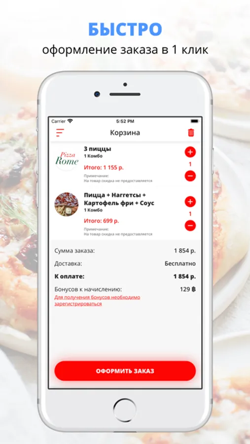 Скачивайте наше приложение, оформляйте заказ и наслаждайтесь любимой едой, где бы Вы ни были! Приятного аппетита!