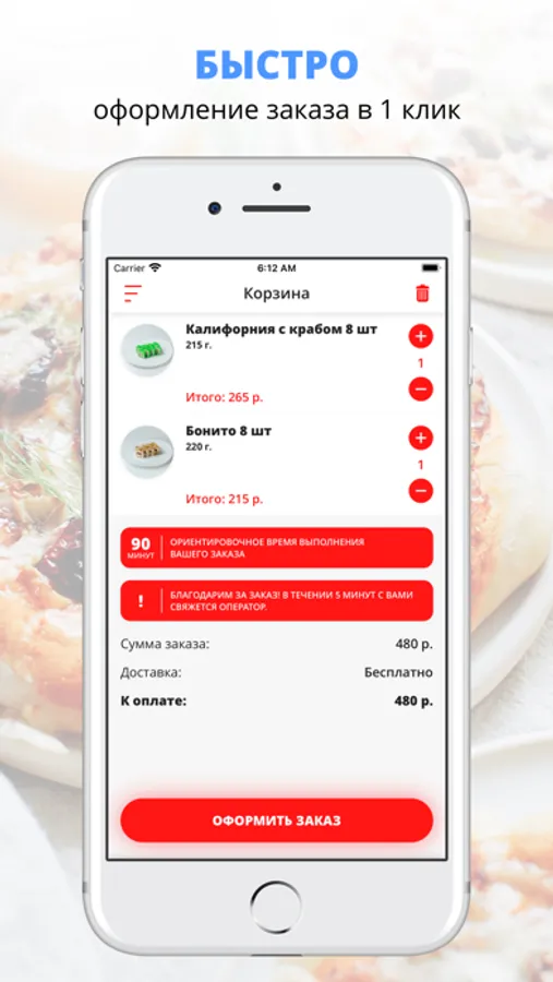 Скачивайте наше приложение, оформляйте заказ и наслаждайтесь любимой едой, где бы Вы ни были! Приятного аппетита!
