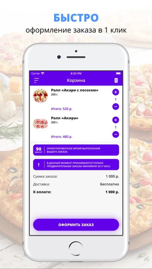 Скачивайте наше приложение, оформляйте заказ и наслаждайтесь любимой едой, где бы Вы ни были! Приятного аппетита!