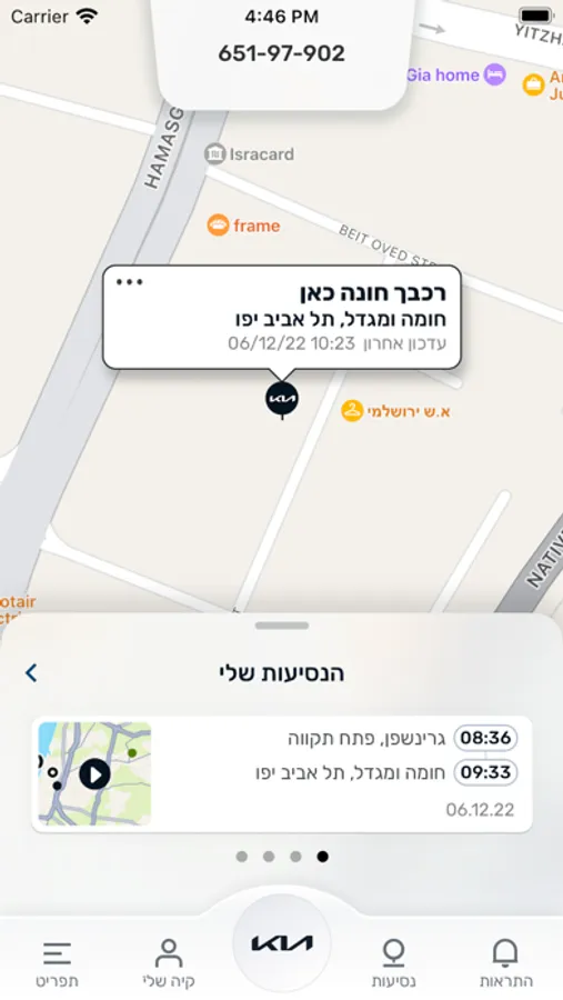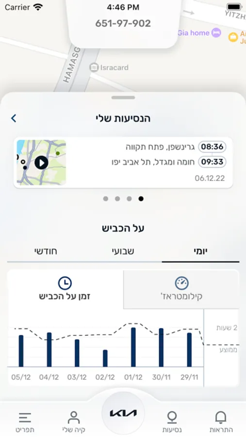 אפליקציית MY KIA מאפשרת לך לאתר את מקום הרכב, לקבל התראות בזמן אמת, לבחון את היסטוריית נסיעות ועוד (* לבעלי מערכת איתור).