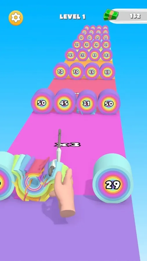In Color Slice 3D you slice your way through nice color obstacles, while improving your throwing speed and skills of your knife.