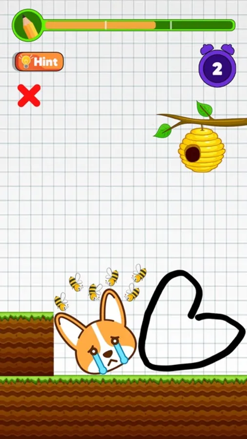 Save The Dog: Bee Draw Puzzle is a trending draw puzzle game. Draw lines to create walls to save the doge from attacks by bees from the hive. You need to protect the doge with the drawn wall for a few seconds during the attack of the bees, hold on and you will win the game. Use your imagination to save the doge.