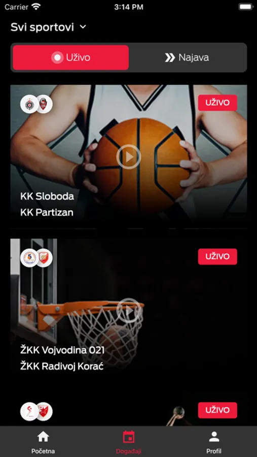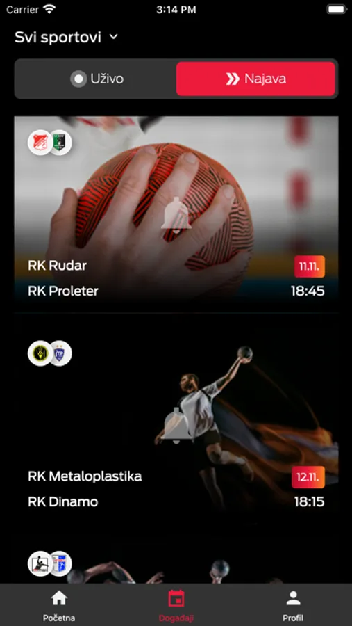 Pogledaj najave događaja, pozovi društvo i uživaj u sportskom sadržaju.