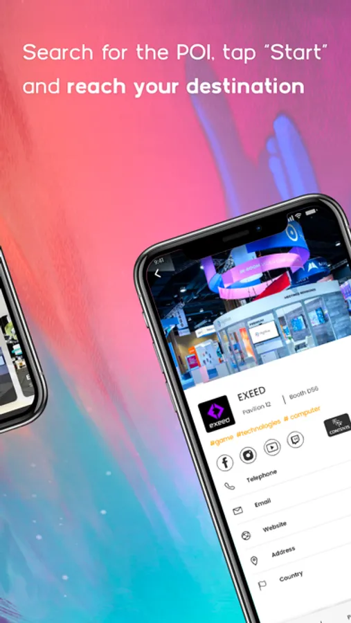 - explore the interactive map to locate the exhibitors, the event locations, the services and the points of interest