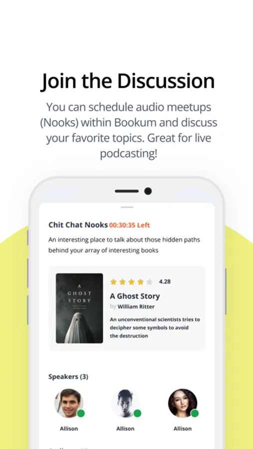 All great books (and even bad books) need to be discussed and Nooks are the place to do it! Nooks are our social-audio rooms that allow you to have real-time book discussions. If something juicy happens in your book, invite your friends and talk about it! No more having to wait to connect.