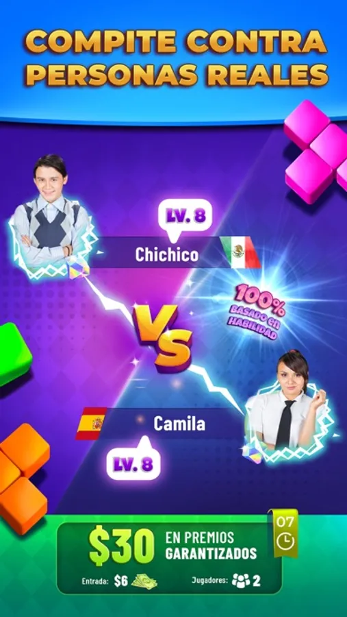 Face real players: Play matches against opponents with the same skill level. If you're new to mobile puzzles, the Enchufe TV puzzle game will find a player with the same experience; but if you're a pro, it will search for the perfect rival for a balanced match.