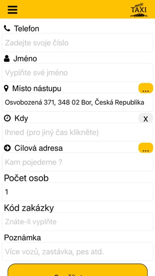 Online objednání, sledování příjezdu vozidla. Platba v hotovosti, nebo kartou.
