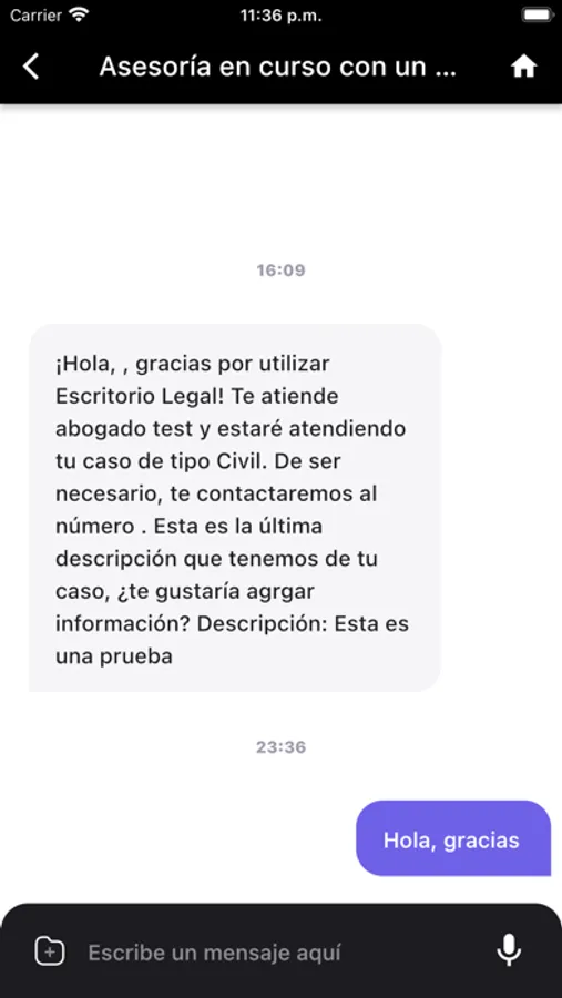 Nunca antes fue tan fácil resolver cualquier duda legal, solo abre la app y chatea con un abogado!