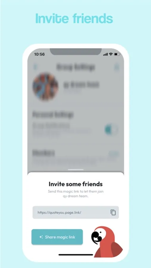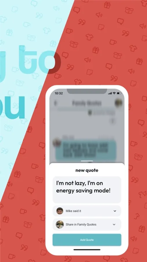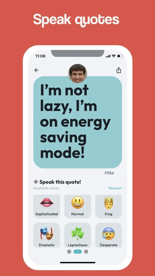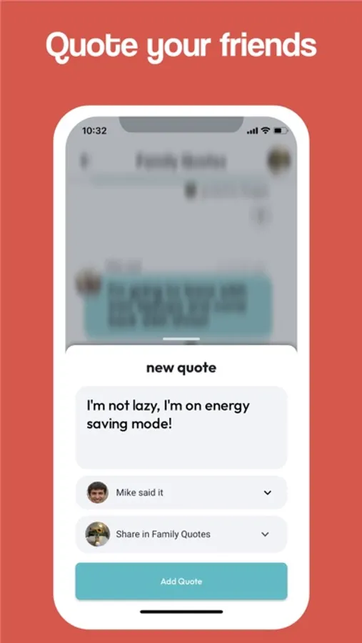 Create groups to share quotes (or just keep it to yourself as an area to store your own quotes). Invite your friends to the group and start quoting them! You can react to quotes, speak the quotes out loud, and order physical items with the quote printed on them (like mugs, stickers, etc.).