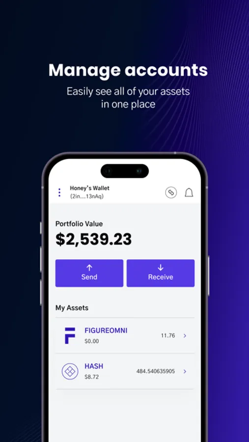 Harness the power of distributed financial service applications powering Figure digital marketplaces, funds, investment opportunities, equity solutions, and more. The Figure Wallet is your connection to Figure's ecosystem where you can explore top-tier Fund and SPV products offered by experienced Fund Managers, explore highly-vetted investment opportunities for ownership stake in private companies, and explore digital utility tokens that are used to pay for transactions (gas fees), staking, and grants.