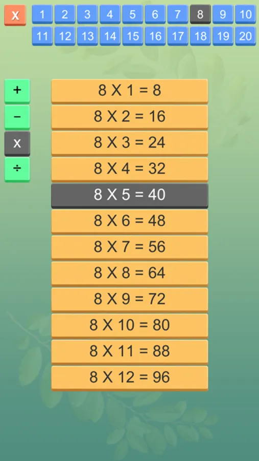 Our application offers a wide array of math tables, ranging from 1 to 20. You'll have the opportunity to not only learn these tables but also refine your skills through two distinct quiz modes.