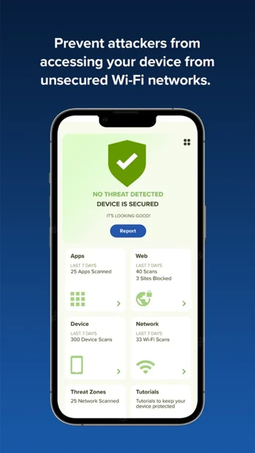 - Alerting you of untrusted networks when using public Wi-Fi networks, vulnerable device configurations, and more.
