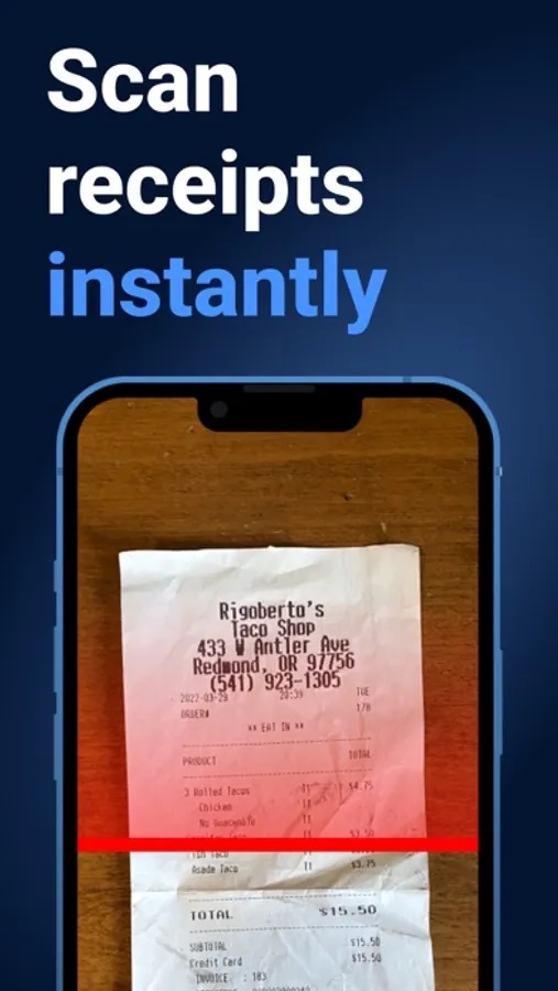 Simply hold your phone over the receipt and let the scanner work its magic.