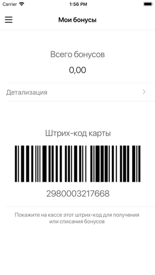 - просматривать баланс бонусных баллов в программе лояльности;