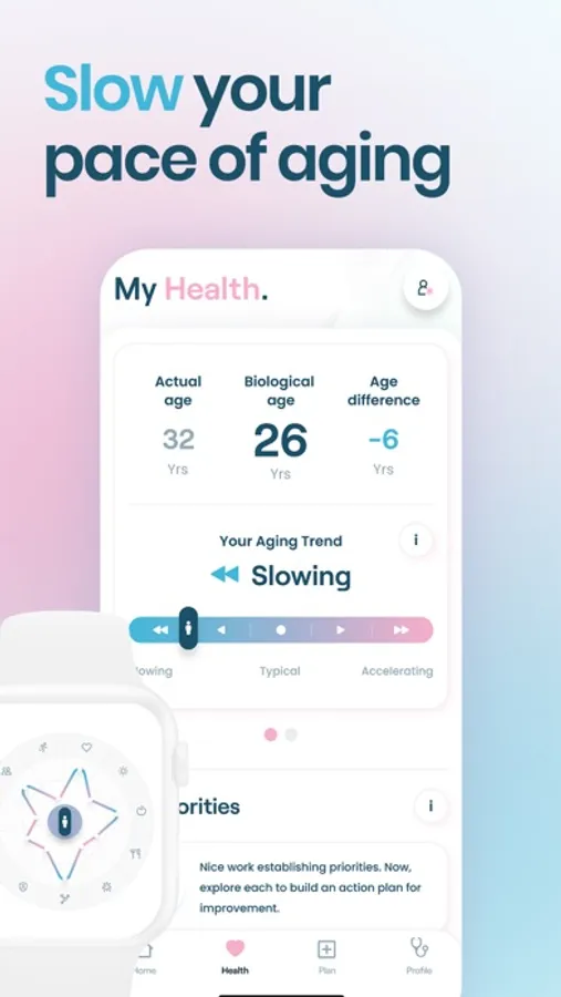 • Accurately estimates your mind and body age and then works diligently to make you younger and stronger